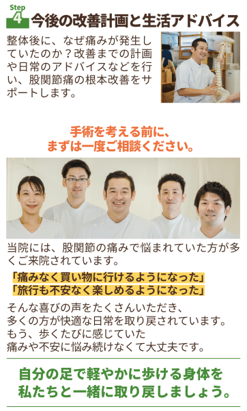 (最終的に人工股関節の手術)を勧められることも